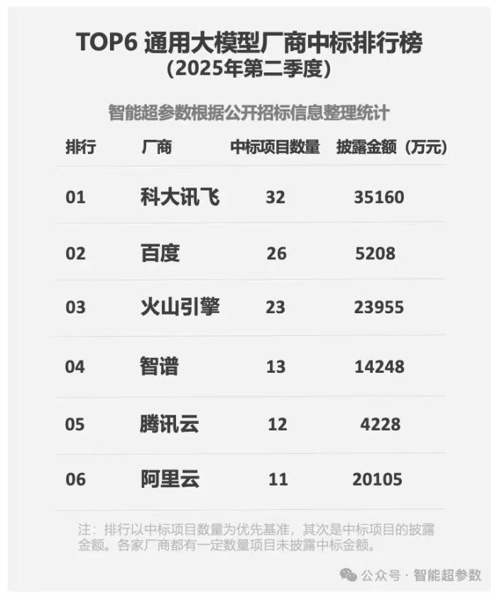 从Q1到Q2, 科大讯飞稳坐2025上半年大模型中标头把交椅
